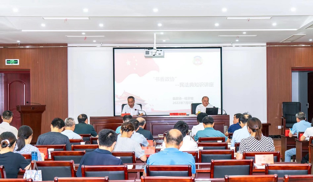 为深入学习宣传贯彻习近平法治思想、习近平总书记关于民法典重要论述,深化书香政协活动开展,提升政协委员、机关干部职工法治理念,7月8日,石台县政协举办“书香政协”——《民法典》知识讲座,由县政协副主席桂宗敏主讲。县政协主席会议成员、县政协常委、机关各委办室负责同志,各乡镇联络组组长等五十多人现场听讲。